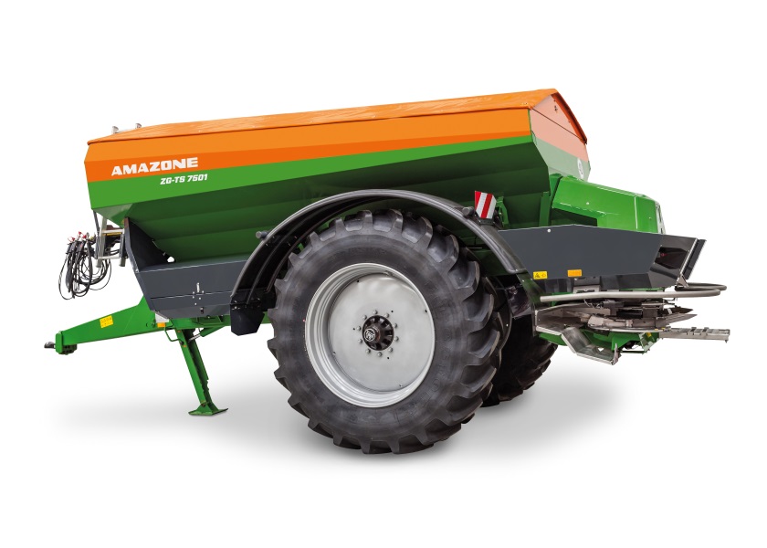 zintegrowanemu systemowi rozsiewu granicznego AutoTS - Dokładne kopiowanie śladów kół ciągnika za pomocą osi skrętnej z 28° kątem skrętu